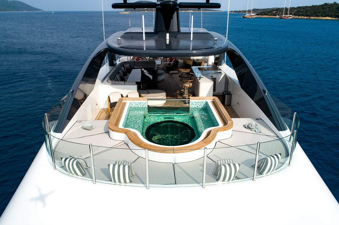 O STARBURST III é outro membro de destaque do clube. Com duas jacuzzis, cinco cabines e espaço para 10 pessoas, o iate maltês está disponível para aluguel durante o verão europeu por cerca de €260 mil por semana (mais de R$ 1,5 milhão, em 5 de maio).