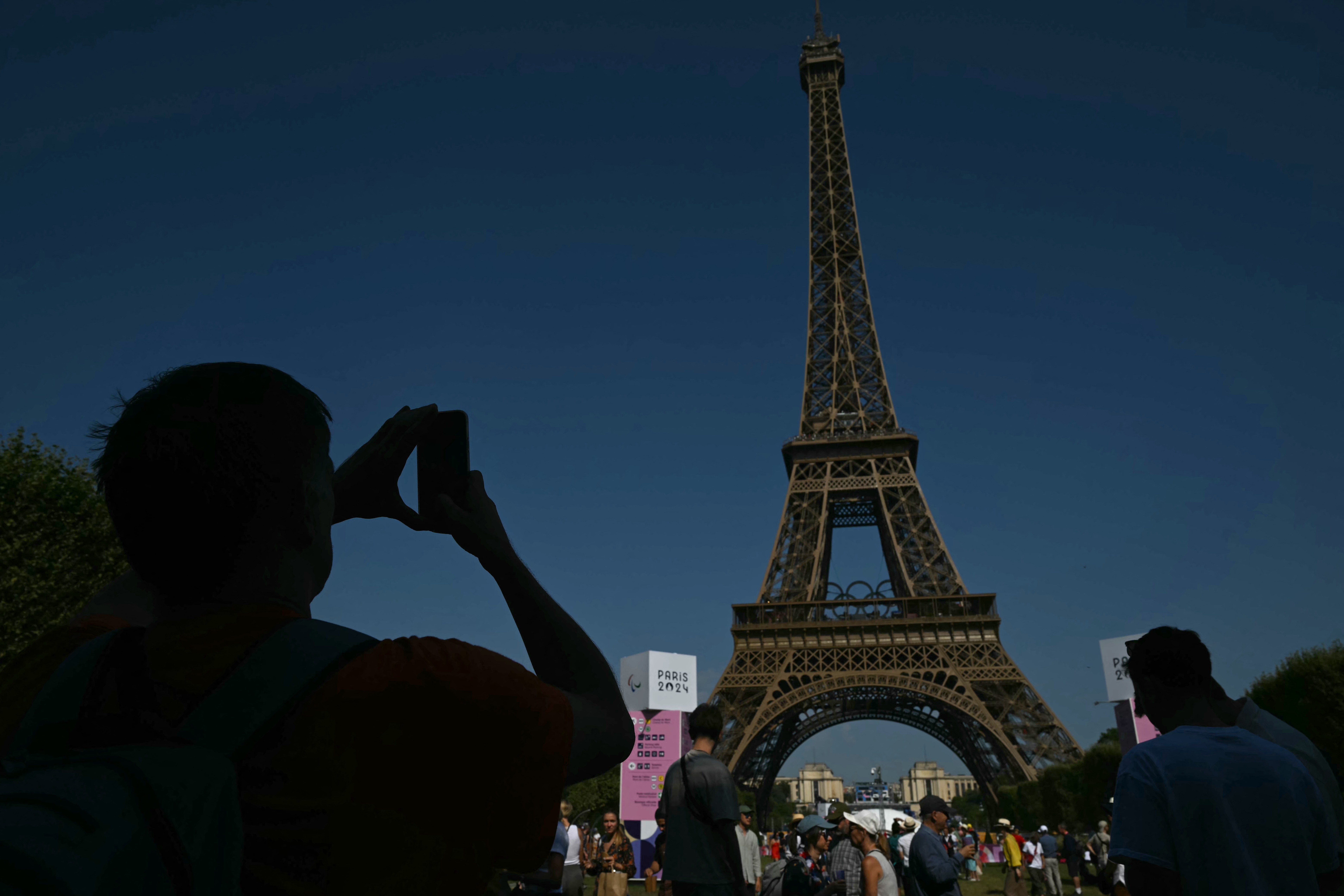 Especialistas recomendam medidas simples, mas eficazes, para garantir a segurança das suas informações enquanto viaja para o exterior. Turistas fotografam a Torre Eiffel, em Paris, no dia 29 de julho de 2024